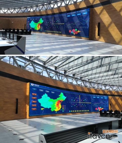 云計算數據中心陽光中心大廳LED大屏采用聯建光電VA系列小間距產品,面積達119㎡。該款產品憑借著高清、高灰度、高刷新、超廣角等卓越性能以及智能系統備份、靈活安裝方式、精準無縫拼接等特點,為全國城市管理、公共安全、醫療衛生、電力能源等行業應急指揮調度中心提供顯示支持,并獲得了行業內的良好口碑。此外,該屏系統支持多路信號輸入,可滿足多屏聯動傳播功能需求,能對復雜信息進行實時顯示,為指揮調度工作提供有效信息;穩定的播控系統,能夠準確、及時將各部門具體數據、視頻等信息提供給決策者,及時進行部門間溝通協作,助力云數據中心各項精細化業務開展。