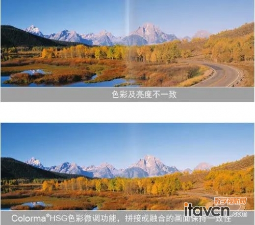 最常見的多臺信號處理技術是Edge Blending邊緣融合技術,這一技術也逐步成為主流工程投影機的標準配置,邊緣融合產品和技術本身已經是一個市場巨大的市場,從傳統的軟融、硬融發展到網絡分布式階段,不過據我們觀察,目前投影機自帶的融合技術發展還處在較為原始的階段。在很多項目中,投影機的融合功能并沒有得到真正應用,發展潛力還很大,融合技術要得到更好的應用,可以朝著簡單化或專業化方向發展,寶視來關注如何讓投影機的融合功能以更實用的人性化方式來呈現,技術的簡單化可以加快應用普及,我們也持續關注自動融合技術的發展。