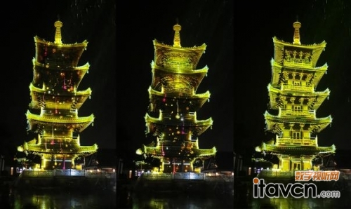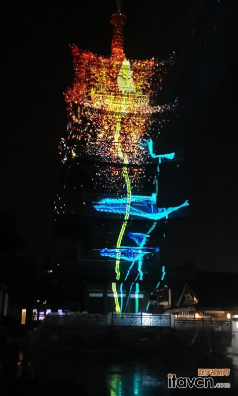 由13臺31,000流明的松下工程投影機PT-SRZ31KC打造的一場光影盛宴,讓拈花塔的整個塔身熠熠生輝!