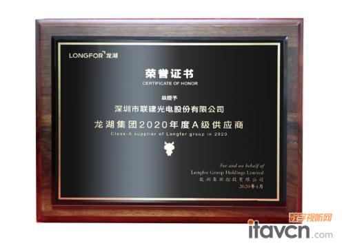 作為令人信賴的大屏幕供應(yīng)商,聯(lián)建光電在業(yè)內(nèi)一直有著良好的口碑,曾為國(guó)內(nèi)眾多知名地產(chǎn)商提供專業(yè)、個(gè)性化顯示應(yīng)用解決方案,包括華潤(rùn)置地、星河地產(chǎn)、長(zhǎng)春力旺、華僑城等。近日,更是收到了來自龍湖集團(tuán)頒發(fā)的“2020年度A級(jí)供應(yīng)商”證書,再次對(duì)聯(lián)建光電提供的卓越產(chǎn)品與服務(wù)給予了充分認(rèn)可與肯定。