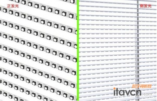 2.燈珠側(cè)貼:采用側(cè)發(fā)光技術(shù)。側(cè)貼式led燈珠安裝在燈條是上側(cè)或下側(cè),是可視角度達(dá)160°,具備更廣觀看視角。行業(yè)上叫側(cè)發(fā)光led透明屏。