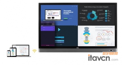 在小組討論中,學生可以通過BYOD(自帶設備)無線分享到老師的主屏幕上,也可以通過分屏方式展示討論中的多個階段成果,幫助學生更好地分享團隊創見,大膽表達意見。