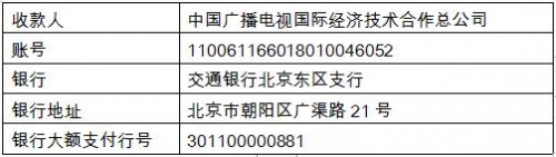 7、 參評費用:所有參與廠家無論獲獎與否均需繳納評審費,費用為每項目2500元人民幣。為保證評選活動嚴肅性評審申報截止前未收到報名款項視為放棄評選。匯款用途請注明BIRTV評獎,我們將為您開具增值稅專用發票,內容為:BIRTV2020宣傳費,我司賬戶信息如下:
