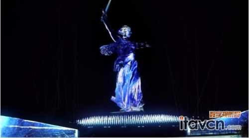 十六臺科視Christie D4K40-RGB 純激光投影機(jī)點亮“祖國母親在召喚”雕像(照片來源:Dreamlaser)