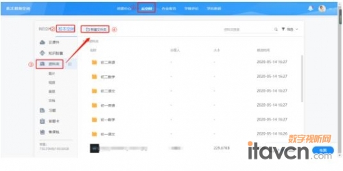 首先,管理員可以找到希沃易課堂的教師空間-云空間-校本空間資料夾,并且新建文件夾,建議學校管理員按照年級、學科、學年等信息來命名文件夾,方便分級管理。