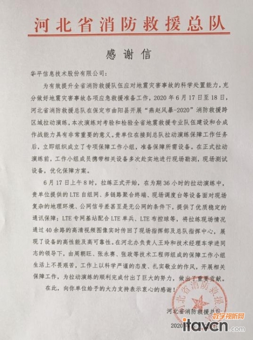作為全國消防隊伍可視化應急指揮系統提供商,華平單兵、(照明)布控球、高清視頻指揮箱、現場調度臺、指揮視頻終端、多鏈路聚合終端、LTE和Mesh自組網設備、輕型衛星便攜站等應急通信設備參與到各省演練中的同時,技術專家小組也在第一時間前往地震演練現場、前線指揮部和后方指揮中心進行技術保障。