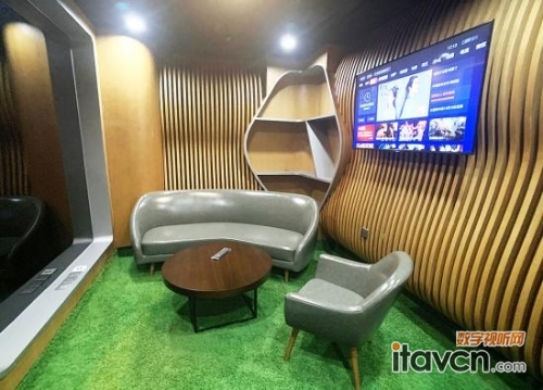 我們走進了一間VIP嘉賓室,一臺55英寸BRAVIA 4K商用顯示器正在播放精彩節目內容,