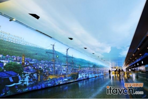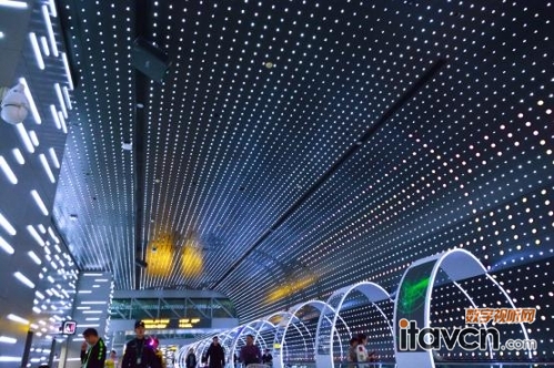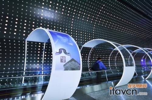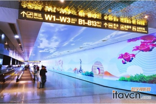 【數(shù)字視聽網(wǎng)訊】人在旅途,機(jī)場(chǎng)中轉(zhuǎn)站成為旅客掃去一身疲憊的落腳點(diǎn)。為了提升旅客飛行前后體驗(yàn),廣州白云國(guó)際機(jī)場(chǎng)著力于借助高科技手段激活機(jī)場(chǎng)空間,打造了一條集公共服務(wù)、藝術(shù)展示、廣告發(fā)布于一體的“時(shí)空隧道”,這在全國(guó)機(jī)場(chǎng)尚屬首創(chuàng)。在全長(zhǎng)約200余米,空間面積超過2500平方米的時(shí)空長(zhǎng)廊中,總共采用54臺(tái)NEC激光投影機(jī),帶來一場(chǎng)奇譎夢(mèng)幻的穿越之旅。