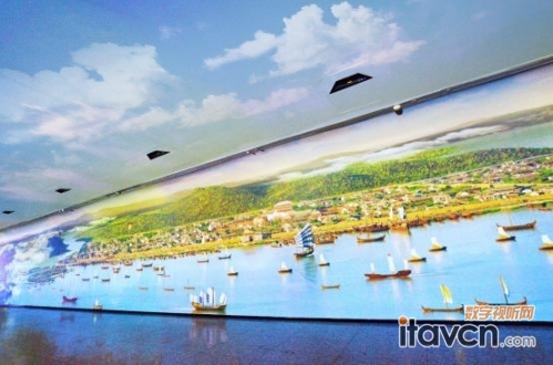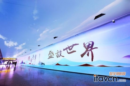 白云機(jī)場(chǎng)巧借航站樓主樓負(fù)一層通道空間,48臺(tái)NEC PX753UL+ 激光投影機(jī)由于全部采用隱藏安裝的方式,能帶來很強(qiáng)烈的沉浸感及美觀度。而隧道因受行人穿過造成陰影的影響,有超過半數(shù)的投影機(jī)選擇搭配了超短焦反射式鏡頭。要知道,在如此大尺寸畫面上使用超短焦反射式解決方案,其實(shí)現(xiàn)投影融合的難度相當(dāng)之高,但最終營(yíng)造出的畫面感極強(qiáng),從墻面延伸到天花板的融合畫面渾然天成,讓抵達(dá)廣州的旅客旅途勞累頓消殆盡。