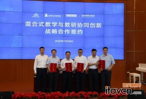 【數字視聽網訊】7月28日,廣州黃埔區在北京師范大學廣州實驗學校舉行混合式教學教研協同創新合作簽約活動。活動現場,黃埔區教育局、北京師大勵耘教育科技發展集團有限公司、南方都市報、廣州視睿電子科技有限公司聯合成立“混合式教學與教研協同創新中心”并舉行揭牌儀式。