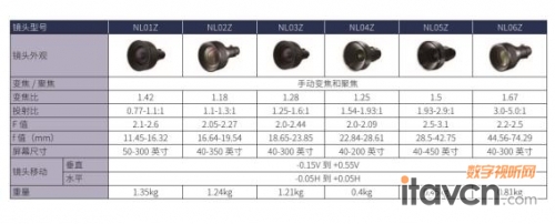 涵蓋多種投影距離的6款可更換鏡頭