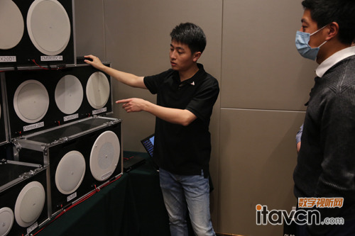 試聽間內安排了三個部分內容,分別為壁掛揚聲器對比試聽、吸頂揚聲器對比試聽和小型壁掛揚聲器及嵌入式HIFI揚聲器試聽。