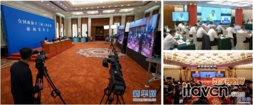 ▲洲明UMini產品入駐人民大會堂與梅地亞新聞中心,為2020年全國兩會打造5G+4K/8K見屏如面視頻交互體驗。(圖片來自新華網)
