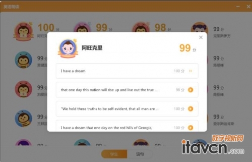 “而英語老師最關心的口語評測問題,希沃易課堂提供語音識別、智能算法對學生朗讀音頻批改評分功能,為每位學生提供個性化的糾正輔導。”希沃教研顧問還表示:“希沃易課堂具備學生發表觀點、拍照上傳、學生傳屏等多種類的學科工具,也為學科教學帶來更多便利。”