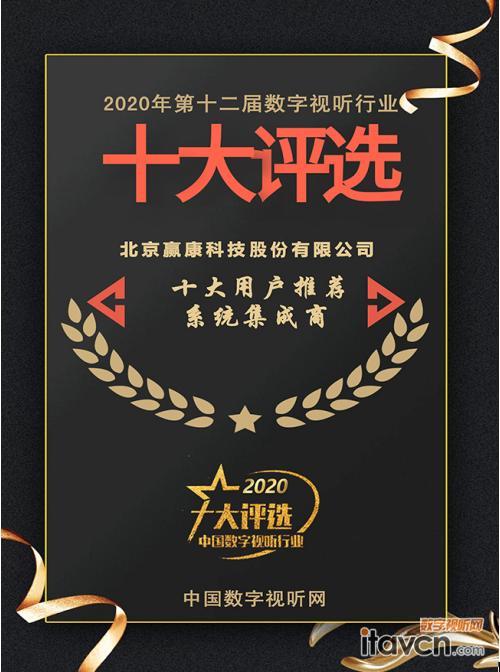 【數(shù)字視聽網(wǎng)訊】近日,由中國數(shù)字視聽網(wǎng)主辦的主題為“創(chuàng)新引領(lǐng)變革 品牌創(chuàng)造價值”2020年度數(shù)字視聽行業(yè)十大品牌評選活動正式落下帷幕。眾多業(yè)內(nèi)評審專家成員及網(wǎng)友經(jīng)過兩個多月的慎重評審和投票,評選結(jié)果最終揭曉,贏康股份榮獲2020年度數(shù)字視聽行業(yè)“十大典型應(yīng)用案例”、“十大用戶推薦系統(tǒng)集成商”兩項(xiàng)大獎。
