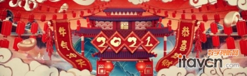 舞蹈場(chǎng)景方面,艾迪普在主色調(diào)運(yùn)用了紅黃,并加入對(duì)聯(lián)、祥云、燈籠、元寶、鞭炮等喜慶的中國(guó)元素,增添熱鬧歡騰,吉祥活躍氣氛;還運(yùn)用了三維建模與二維手繪融合的手法,整個(gè)舞蹈場(chǎng)景精致大氣。