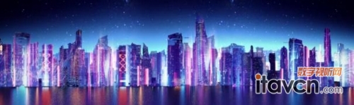 歌聲與夜晚城市與紫藍(lán)的霓虹燈光相結(jié)合,搭配唯美星空,營(yíng)造出一種光影流動(dòng)、明亮的視覺(jué)感。
