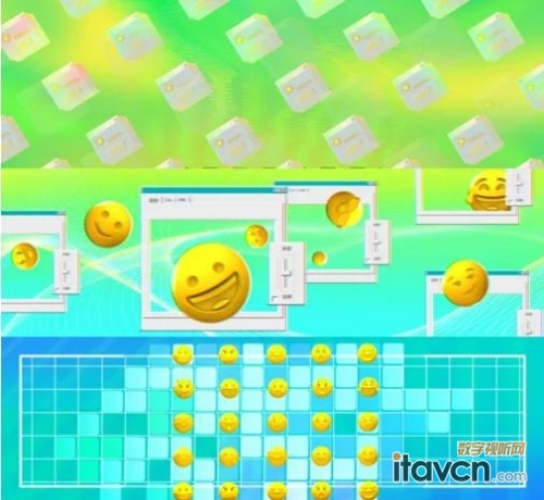 主屏運(yùn)用復(fù)古電子故障風(fēng),運(yùn)用宕機(jī)與emoji等契合歌曲情緒的元素做出重復(fù)循環(huán)的效果從而烘托出歌曲輕快動(dòng)感的旋律