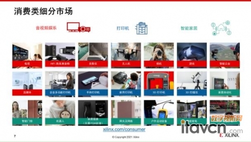另外,還有家居健康相關的網關設備、戶外運動設備、智能家電設備,甚至汽車后裝市場設備也都是賽靈思所支持的應用領域。所以大家可以看到賽靈思所覆蓋的消費類市場領域用也是一個非常廣泛的應用海洋,他們里面的分門別類是沒可能被一兩個專門的電視主芯片也好,或者是手機主芯片來去覆蓋的,也只有像賽靈思這樣的通用、靈活應變的的平臺,才能全面滿足這一塊市場的廣泛應用。
