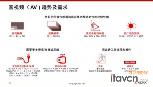 廣播電視和專業音視頻應用業務占賽靈思2021年財年大概10%左右的份額,賽靈思對于基礎設施的設備應用非常廣泛。賽靈思專業音視頻和廣播細分市場,主要針對以下幾種應用,一個是影院級別的應用,另外是大型現場活動設備方面的應用,另外還有專業音頻,尤其是專業音頻的處理和數字混音器的應用及數字標牌更專業音視頻領域等。