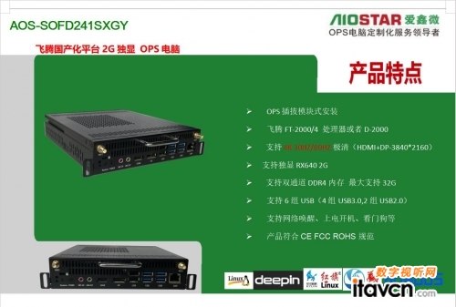 除了以上產品外,愛鑫微也展示了研發許久的采用國產飛騰D2000與兆芯6580/6780A CPU的國產化OPS電腦