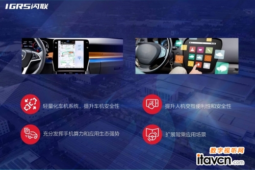 而該款產(chǎn)品可以在駕乘環(huán)境下,車機(jī)和手機(jī)交互連接,從而使車機(jī)具備手機(jī)的全部功能,用戶可以通過的內(nèi)置觸控顯示屏或者語音免視功能進(jìn)行操作,徹底解決開車不得不使用手機(jī)的情景,大大提升駕駛的安全性;它還具有低門檻高性能的特性,車機(jī)無須進(jìn)行改造,所有手機(jī)都能使用,采用無線連接方式,而且系統(tǒng)兼容,無需任何特殊權(quán)限,安卓、蘋果、鴻蒙手機(jī)都可以與車機(jī)連接使用,而且手機(jī)與車機(jī)的性能可以進(jìn)行疊加,發(fā)揮各自優(yōu)勢。