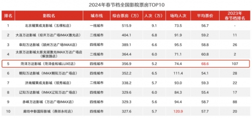 萬達影城菏澤佳和城LUXE店2024春節檔總票房居全國第5