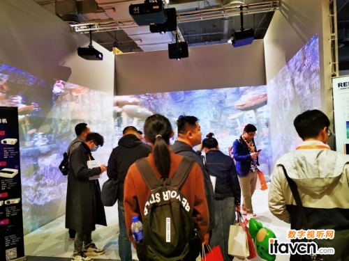 本次展會(huì)中,HVS鴻合智能打造了極具創(chuàng)意的CAVE投影應(yīng)用場(chǎng)景。鴻合激光工程投影機(jī)憑借超高清、高亮度及穩(wěn)定的性能表現(xiàn),成功吸引了眾多與會(huì)者的目光。該系列投影機(jī)不僅滿足了各類商業(yè)展示、文旅景觀以及高端會(huì)展活動(dòng)對(duì)高品質(zhì)圖像輸出的需求,還以靈活多變的安裝方式和智能操控系統(tǒng),展示了在美陳領(lǐng)域的無(wú)限可能。在美陳領(lǐng)域,CAVE投影的應(yīng)用具有創(chuàng)新意義,極大地拓展了傳統(tǒng)展示的限制,為各類展覽、活動(dòng)提供了更豐富多元的藝術(shù)表達(dá)手段和更具吸引力的傳播效果。