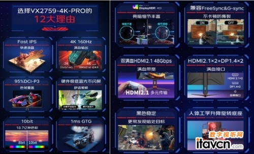 【數字視聽網訊】中國上海,2024年6月19日——為滿足電競市場多元和質價比更好的消費需求,優派(ViewSonic)推出高分高刷、硬件級低藍光電競顯示器新品VX2759-4K-PRO。該顯示器具有27英寸大屏視野,配備新一代Fast IPS快速液晶面板,3840x2160超清分辨率,原生160Hz高刷新率,完美搭檔40系顯卡,1ms GTG響應時間,兼容FreeSync&G-sync告別卡頓,讓電競游戲戰斗力爆滿火力全開。VX2759-4K-PRO采用硬件低藍光技術,將有害藍光占比降低至50%以下,護眼的同時色彩效果不打折;VX2759-4K-PRO還擁有163PPI屏幕清晰度,100%sRGB,95%DCI-P3廣色域,人體工學可升降旋轉等功能與設計,是滿足娛樂辦公多場景需求的必選之屏。
