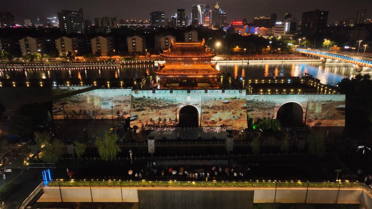 暮色四合,女王系列通過多臺融合疊加的形式,以璀璨光影妝點著巍峨壯麗的古城墻。水韻江南、千秋淮揚……伴隨著一段磅礴開合的大運河文化宣傳片,第六屆運博會的精彩序幕緩緩揭開,生動展現大運河的歷史變遷與人文風貌,記錄下因“河”而生、因“運”而興的美好生活。