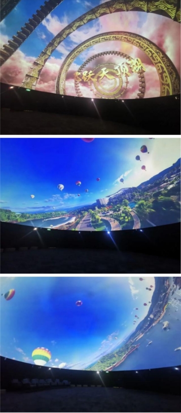 產(chǎn)品介紹:20米直徑飛行影院,4K投影機(jī),贏康采用了7thSense Infinity媒體服務(wù)器,Scalable自動(dòng)校正軟件,6K60幀影片。