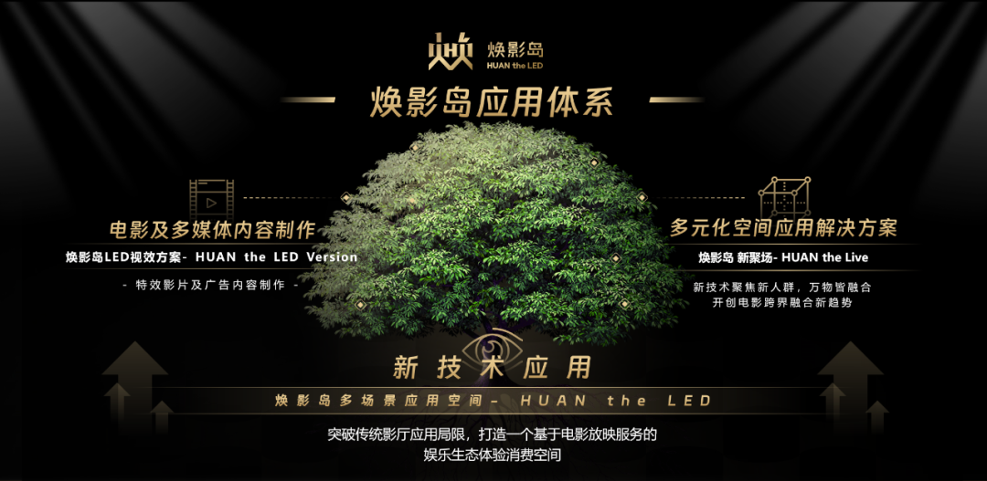 發布會上,華夏利亞德旗下全新技術品牌“煥影島 HUAN the LED”全面亮相。依托利亞德集團的技術、產品及品牌優勢,煥影島LED 電影屏系列可覆蓋從VIP影廳到巨幕影廳的全尺寸段需求,全球首款Micro LED 0.9間距電影屏更引領行業技術革新。而全球首個Micro LED電影屏影廳即將在石家莊落成,該項目有望成為未來影院體驗的又一新標桿。隨后,華夏利亞德正式發布“煥影島 HUAN the Live”多場景應用及解決方案。該方案以聲、光、屏、景的全維度技術融合為核心,聯合生態伙伴,共同構建了從上游內容創作到下游場景體驗的“技術+內容+空間應用”完整生態閉環。