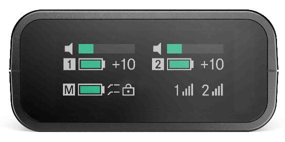 Profile Wireless的雙通道接收機(jī)非常小巧,但兩個(gè)音頻通道的讀數(shù)都清晰可辨