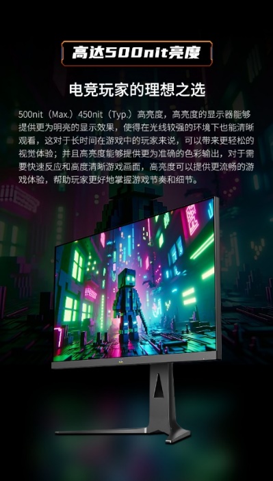 優派VX27G81-2K能夠提供高達500nit的高亮度,帶來更明亮的顯示效果,即使在光線較強的環境下也能清晰觀看,這對于長時間沉浸于游戲戰斗的玩家來說,可以享受更輕松的視覺體驗和準確的色彩表現;而對于需要快速反應和高清晰游戲畫面,同樣可以為玩家提供更流暢的游戲畫質,更好地掌握游戲節奏和細節。