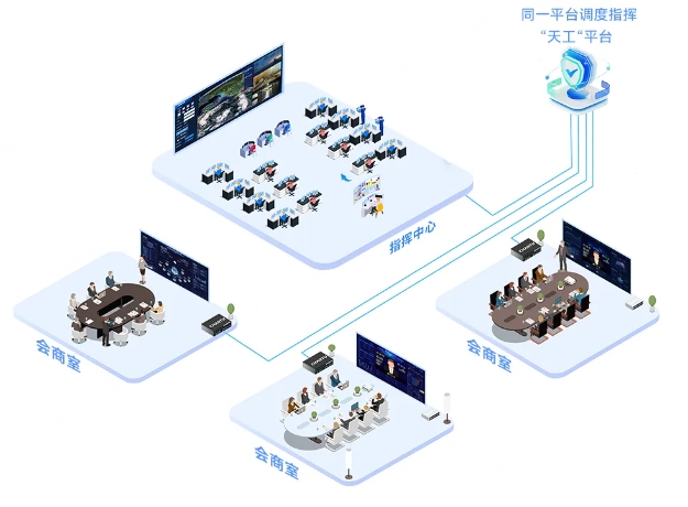 CHARTU長圖分布式音視頻一體化平臺,可對接全國人工影響天氣綜合業務“天工”平臺,業務人員可在“天工”平臺進行任意跨域調度、呼叫等指揮調度動作,實現指揮調度高度集約化。