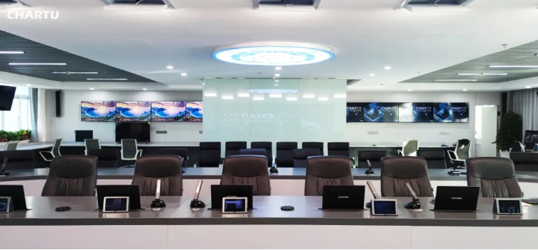 在該項目中,采用數字會議系統、視頻傳輸系統、中央控制系統。氣象視頻會商過程中,對聲音質量、語音清晰度提出較高水平要求。為保障氣象會商正常、高效運行,CHARTU長圖數字會議系統采用先進的音頻處理技術,實現音質降噪處理,有效抑制嘯叫,是的聲音清晰透徹,均勻覆蓋整個會商室,保障氣象會商服務。