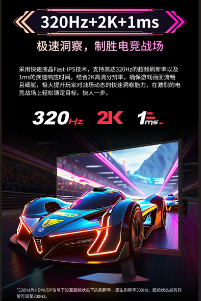 在電競比賽中,每一幀的延遲都可能影響勝負(fù)。VX25G26-2K-3采用Fast IPS電競面板,支持320Hz超頻刷新率,相比傳統(tǒng)240Hz顯示器,畫面流暢度大幅提升,有效減少拖影和卡頓,確保玩家在FPS、MOBA等高速競技游戲中獲得更精準(zhǔn)的操作反饋。