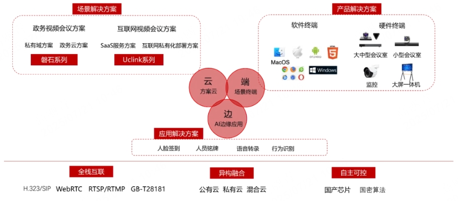 磐石系列:支持10萬級大規模會議,國產化加密與分級管控,適用于黨政、金融等高安全需求場景。