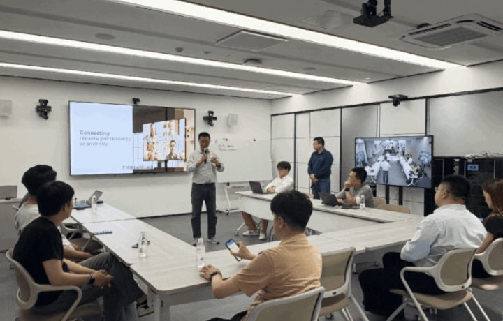 首場體驗會不僅展示了快思聰在智能會議技術的最新成果,更通過實操讓合作伙伴與客戶切身感受到AI賦能現代化協作空間的巨大潛力。企業用戶嘉賓們彼此間也進行了深入的技術交流,對未來大型企業辦公空間建設需求進行深入探討,使得本次會議收獲更加豐富。