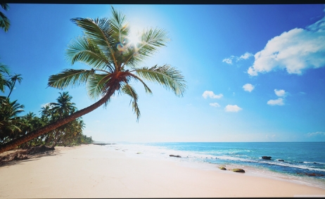 在明暗對比強烈的海濱風景畫面上,明基W4100i呈現的海濱風光盡顯卓越畫質。藍天的澄澈、海水的碧藍過渡自然,棕櫚樹的翠綠層次豐富,沙灘紋理清晰。色彩還原精準,光影細膩,將海濱的清新與明媚完美的投射到硬幕上,能讓體驗者有種親臨海灘的視覺沖擊。