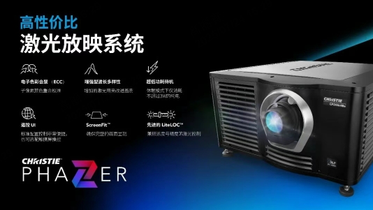 日初系列搭載 Phazer™ 光源技術,2K 分辨率,亮度在 6,000-11,000 流明,適用于寬至 14 米的銀幕、無放映間影廳,較傳統氙燈機型節能 200%-300%,年省 60%-75% 能源成本,是精品影院降本增效的優選。