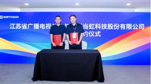 論壇現場,江蘇省廣播電視總臺與杭州當虹科技股份有限公司正式簽署戰略合作協議。雙方將以“AI大模型+超高清+精品內容”為核心展開戰略合作,攜手打造媒體融合發展新范式。