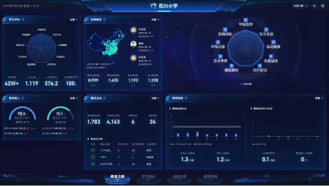 學校以希沃AI為引擎,同時通過希沃魔方·數字基座搭建四大平臺,全面整合教研管理、學生成長、教師發展、設備管理等多維度數據,打破數據孤島,實現數據互通與閉環管理。全鏈條智慧生態治理模型的建構,為管理者提供精準、高效的數據支持,使花川小學實現了教師專業發展的全流程管理。
