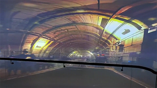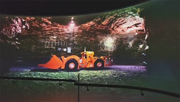 展廳的碗幕體驗區借助曲面結構拓展觀眾的視野范圍,憑借其別具一格的形狀強化了環繞效果與沉浸感,使觀眾能夠全方位領略礦洞工作步驟及流程的場景。