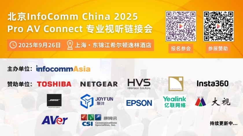 北京InfoComm China 2025 Pro AV Connect 視聽鏈接會將于9月26日在上海·東錦江希爾頓逸林酒店舉辦!本次活動聚焦華東專業視聽市場,匯聚全球領先技術品牌與行業決策者,打造集視聽技術展示、趨勢洞察與商業對接于一體的高端交流平臺。