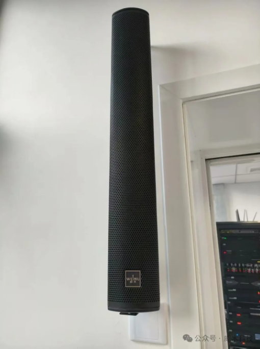 為保證整場的聲壓級勻稱清晰,會議室大屏2側部署了4只威木全頻音柱,它具有強指向、高聲壓級、語言清晰等特點,使得整個參會人員有更佳的聽感體驗。