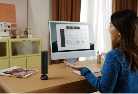 Wave的主揚(yáng)聲器懸浮在觸控屏幕上方,使回聲路徑變長(zhǎng)以優(yōu)化回聲消除效果,隔絕了桌面震動(dòng)帶來(lái)的噪音,降低對(duì)音質(zhì)的影響。另外,麥克風(fēng)位于設(shè)備更高位置,能有效減少桌面物品對(duì)音頻的遮擋。同時(shí),懸浮設(shè)計(jì)降低了機(jī)身體積,收納后接近礦泉水瓶,適配移動(dòng)辦公場(chǎng)景的便攜需求。