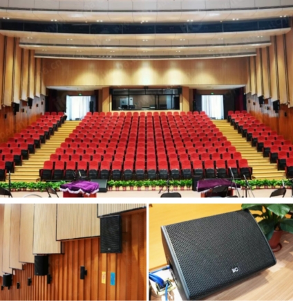觀眾廳兩側采用分散式均勻布置12只輔助環繞音箱,通過科學的空間擴散設計實現寬廣區域的無死角覆蓋,確保從臺口到后排的每位觀眾均能獲得均衡一致的環繞聲場體驗。
