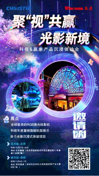 科視與贏康再度聯袂,攜手共書嶄新篇章。在此,我們誠摯邀請各位伙伴親臨現場,沉浸式領略科視全新產品的獨特魅力,感受贏康創意展項的精妙構思。相信前沿技術與非凡創意激情碰撞,一定會給您帶來一場難以忘懷的體驗之旅。