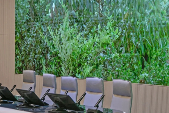 其中,在VIP會議室中部署了超過170個無紙化多媒體會議系統、電子銘牌系統。其中無紙化多媒體會議系統集成了可伸縮顯示屏、話筒、文件共享、電子簽到、投票及多語種譯員功能;電子銘牌系統則是對與會人員信息進行數字化、規范化顯示,特別適用于高規格、多語種會議場景。